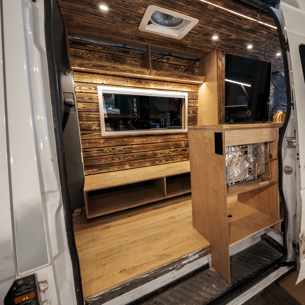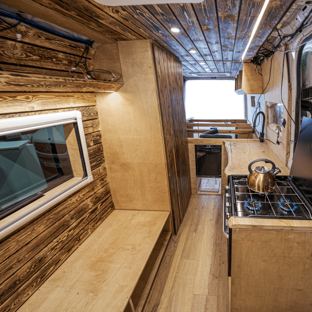 This camper is situated to be fully off-grid – utilising Victron electrical components for 12v & 230v systems, Truma D4E for hot water and heating and gas for cooking. Featuring a shower, spacious garage and comfortable seating area.